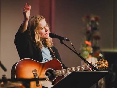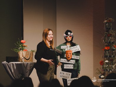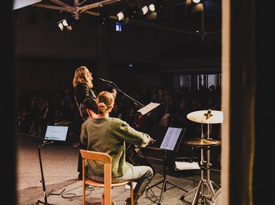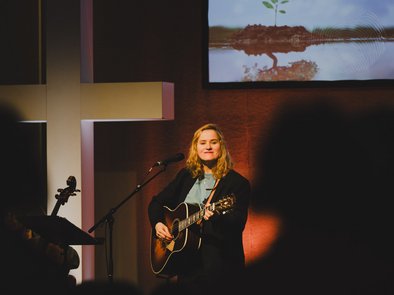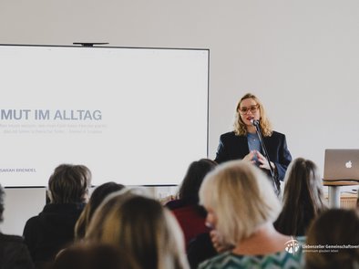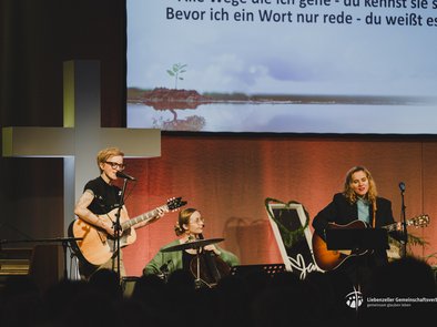Musikalisch begleitet wurde der Tag von Sarah Brendel, Musikerin und Autorin, gemeinsam mit den Musikerinnen Jule und Ella. Mit ihren Liedern und persönlichen Geschichten ließ sie uns an ihren Erfahrungen mit Gott teilhaben. Einige dieser Erlebnisse hat sie auch in ihrem Buch „Das Kleinste ist nicht zu klein“ veröffentlicht.